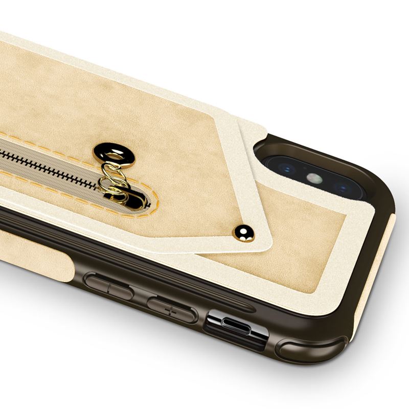 Nazwa prod.Zizo Nebula Wallet Case - Skórzane etui iPhone X z kieszeniami na karty + saszetka na zamek + szkło 9H na ekran (Tan/Brown)