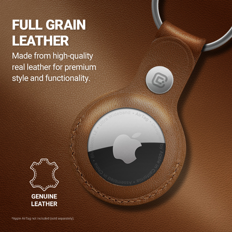 Crong Leather Case with Key Ring – Skórzane etui ochronne brelok do Apple AirTag (brązowy)