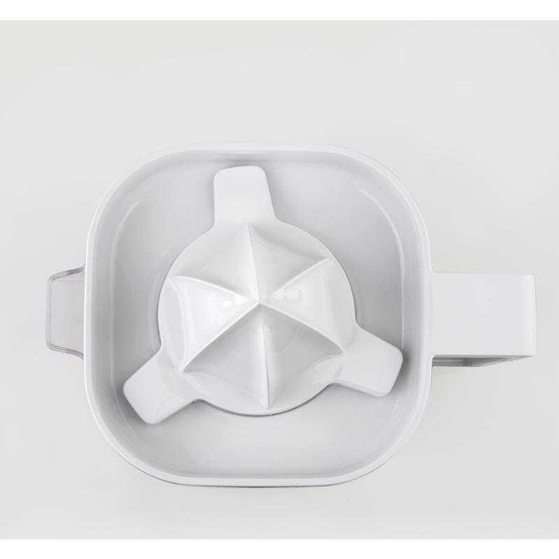 Wyciskarka włącza się automatycznie. Wystarczy przekroić wybrany owoc i docisnąć do stożka, który zmieniając kierunek obrotów przy każdym dociśnięciu, wyciska maksymalną ilość soku z owocu.