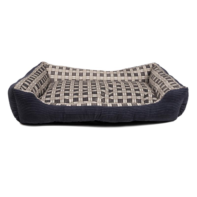 Miekkie legowisko w kształcie kanapy dla Twojego czworonożnego przyjaciela. Wykonane z połączenia sztruksu i kraciastej tkaniny.