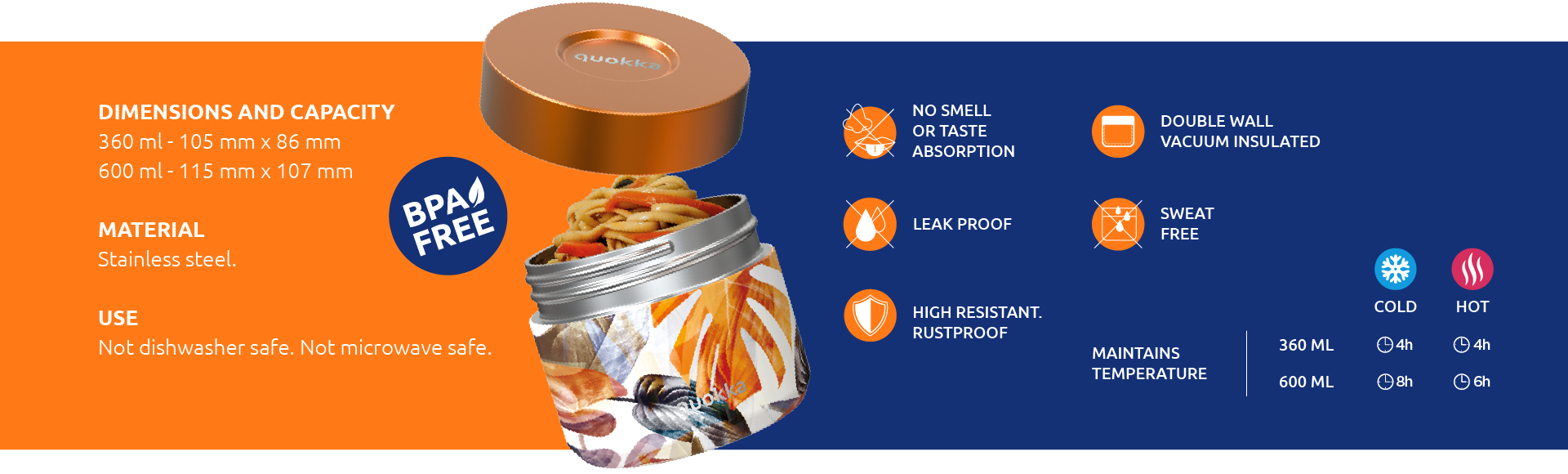 · Utrzymuje temperaturę przez 4 godziny dla gorących i 4 godziny dla zimnych posiłków