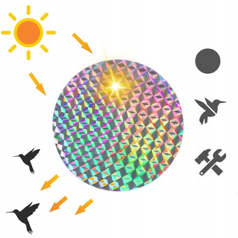 Holograficzny wzór odbija światło, a gdy wieje wiatr, wydaje delikatny dźwięk, dzięki czemu skutecznie płoszy ptaki.