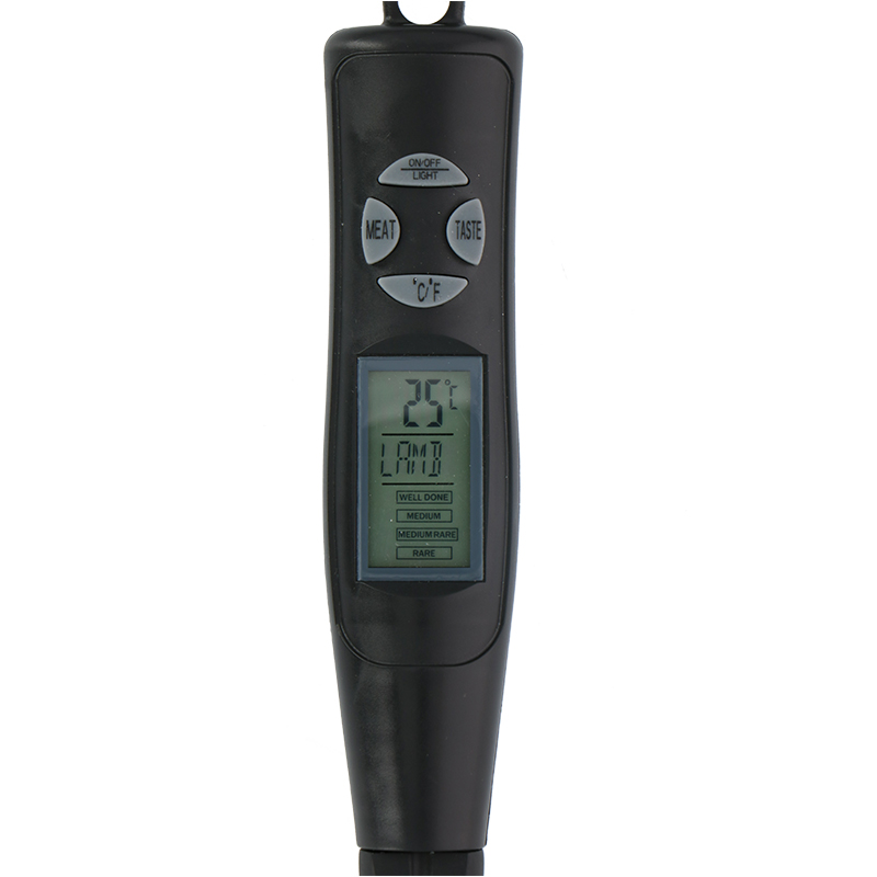 Można w nim przyrządzać wołowinę, cielęcinę, jagnięcinę, wieprzowinę, kurczaka i indyka. Rodzaj mięsa wybiera się za pomocą przycisku "MEAT" (MIĘSO). Następnie, za pomocą przycisku "TASTE", można wybrać stopień gotowania spośród 4 poziomów: mocno krwisty, średnio krwisty, średni, dobrze wysmażony. Termometr uwzględnia również fakt, że na przykład kurczaka i indyka należy jeść tylko dobrze przyrządzone, dlatego wyświetla tylko poziom "dobrze przyrządzone". Po ustawieniu preferencji należy włożyć termometr do mięsa. Aby uzyskać dobry odczyt, należy włożyć sondę do połowy w najgrubszą część mięsa. Sondę należy trzymać z dala od kości i tłustych części ciała. Gdy termometr zmierzy minimalną temperaturę w żądanym zakresie, rozlegnie się alarm. Wartość można odczytać na podświetlonym ekranie. Mała lampka LED świeci na mięso, dzięki czemu nawet przy słabym oświetleniu można łatwo sprawdzić, czy mięso jest gotowe. Jest to szczególnie przydatne podczas wieczornego grillowania.