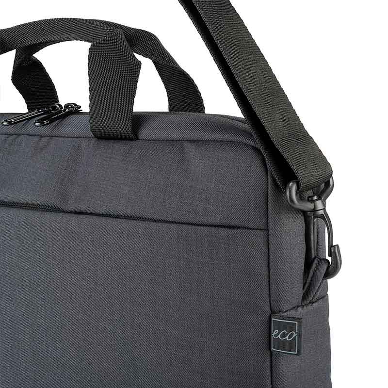 Compact, lightweight bag, perfect forlaptop 15.6" and MacBook Pro 16", made of recycled plastic. Featuring a roomy central compartment, the Stop bag is equipped with an internal pocket for laptops and an external front pocket for accessories. Equipped with trolley attachment strap and removable shoulder strap.