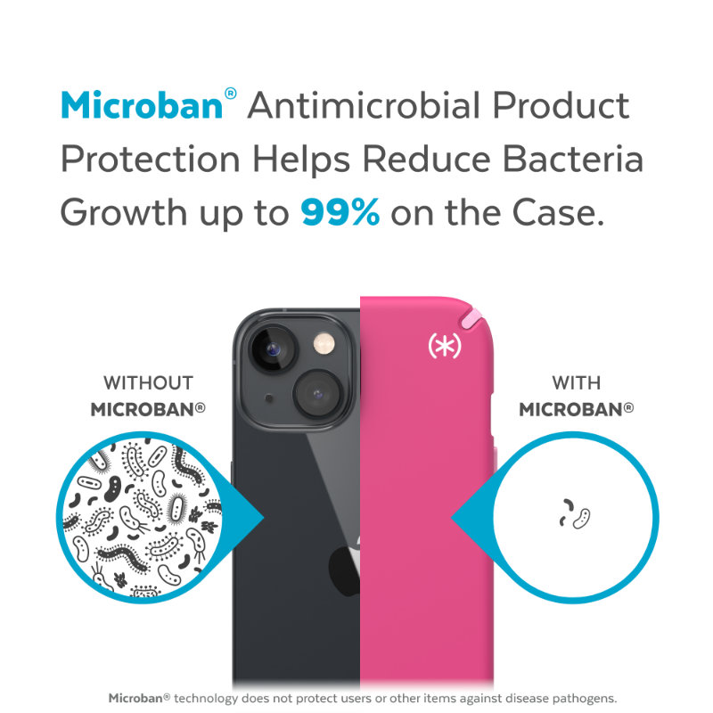 Ultra wytrzymałe etui do iPhone’a 14 Plus z ochroną antybakteryjną firmy MICROBAN® - światowego lidera rozwiązań przeciwdrobnoustrojowych z szerokim portfolio ponad 25 zatwierdzonych technologii. Aktywny składnik wbudowany w strukturę etui Presidio2 Pro powstrzymuje 99% bakterii, które gromadzą się na jego powierzchni. Technologia MICROBAN® zapewnia w ten sposób dożywotnią ochronę przed bakteriami, które powodują odbarwiania oraz nieprzyjemny zapach.