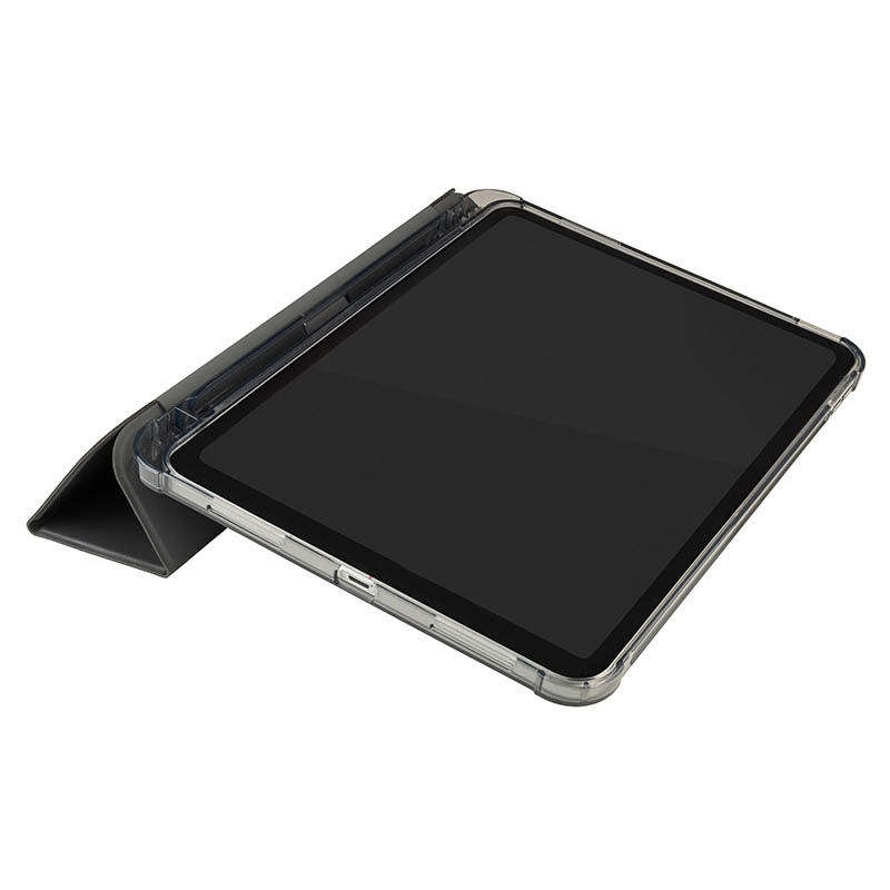Ultraochranný kryt pro nový iPad 11" (2025) / iPad 10.9" (2022), jehož část je vyrobena z recyklovaného plastu. Přední kryt má materiál se saténovým efektem a lze jej přeměnit na praktický stojánek. Zadní kryt proti nárazům je vyroben z průhledného dvojitě vstřikovaného polykarbonátu ohraničeného TPU pro snadnější vkládání iPadu. Saténový kryt má vnitřní přihrádku na Apple Pencil a vnější držák na její nabíjení. Schváleno pro testování podle vojenských standardů.