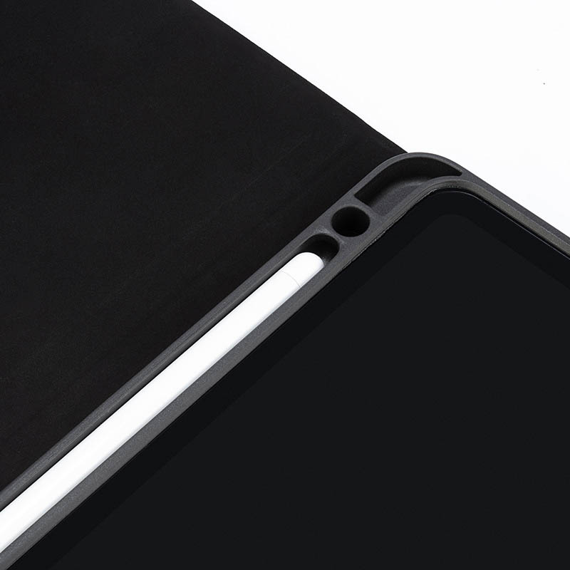 Case for the 2022 10th generation 10.9” iPad featuring a semi-rigid back shell and anti-scratch interior. The cover turns into a practical and convenient stand that lets you use your iPad in a variety of positions. Inside the cover there is a special space to store your Apple Pencil. There is also a camera opening on the back and built-in on off function.