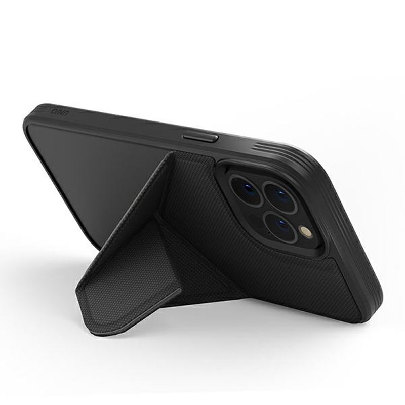 UNIQ Transforma - uzyskaj pełną funkcjonalność swojego iPhone'a dzięki zintegrowanemu, magnetycznemu stojakowi, który umożliwia pozycjonowanie w trybie pionowym lub poziomym.