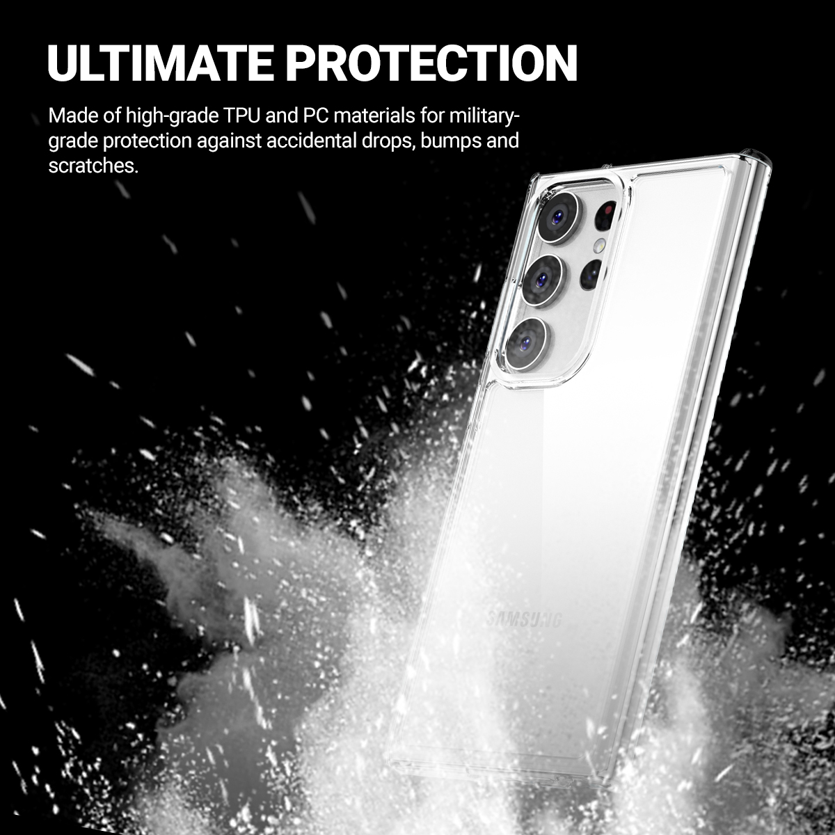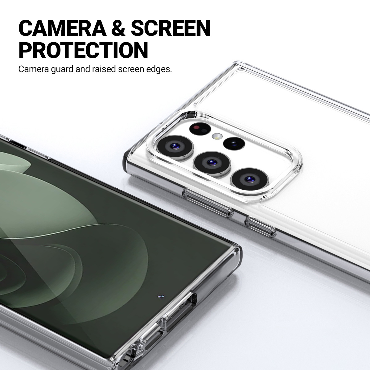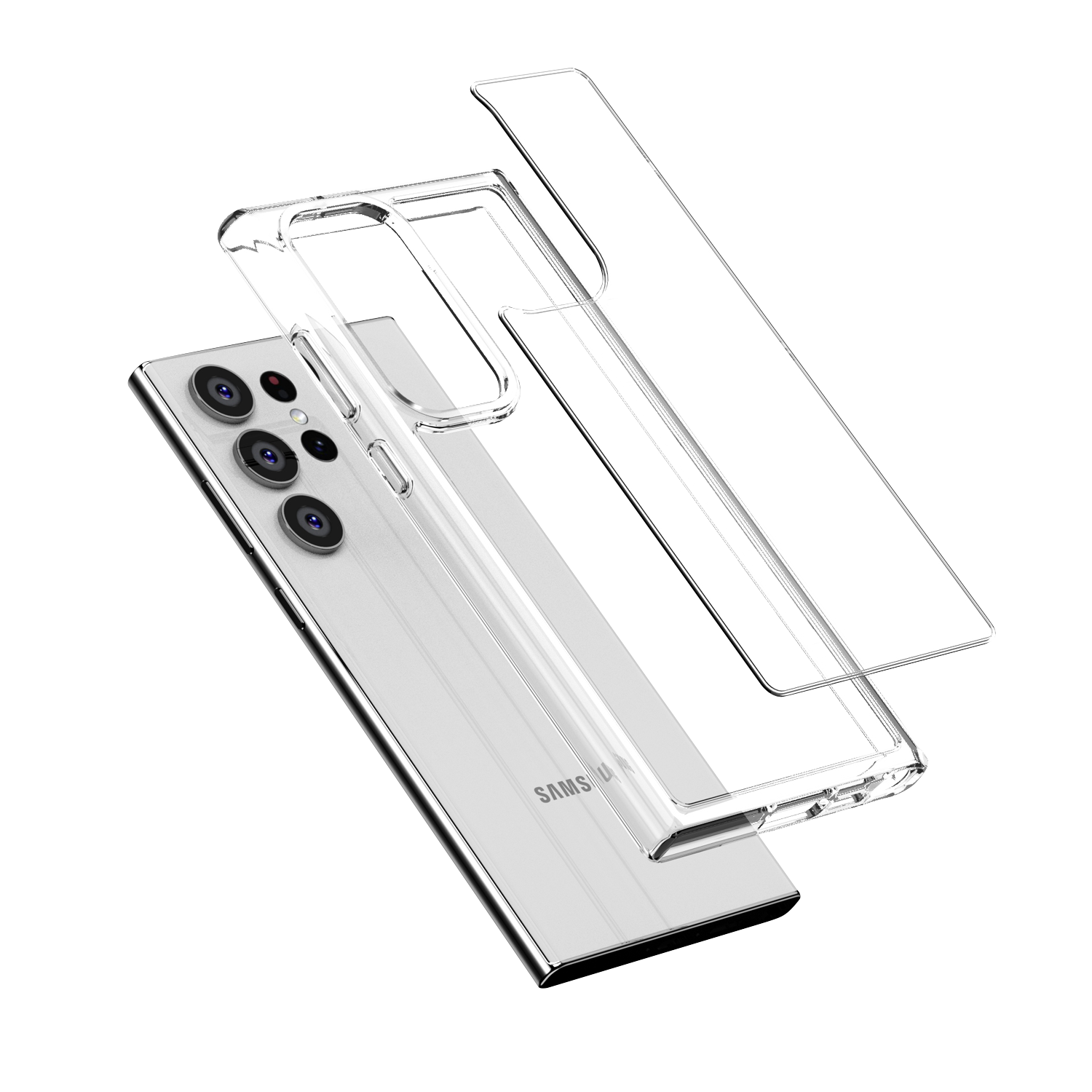 A transparent protective case by Crong for the Samsung Galaxy S23 Ultra that exposes and protects its case from all sides. The crystal-clear back made of hard acrylic combines with flexible sides that absorb the force of impact thanks to special Anti-Shock reinforcements.