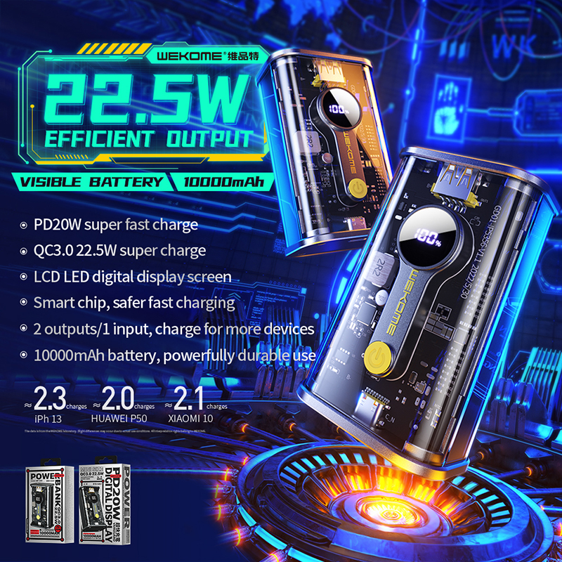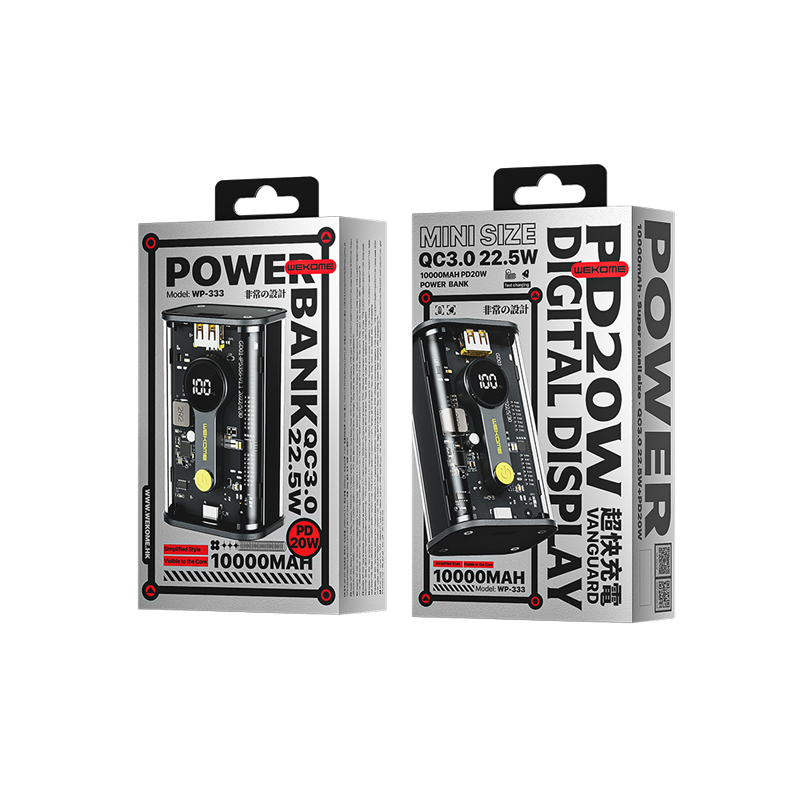 | Item name | WEKOME WP-333 Vanguard Series - Power bank 10000 mAh Super Charging PD 20W + QC 22.5W (Black / Transparent) |