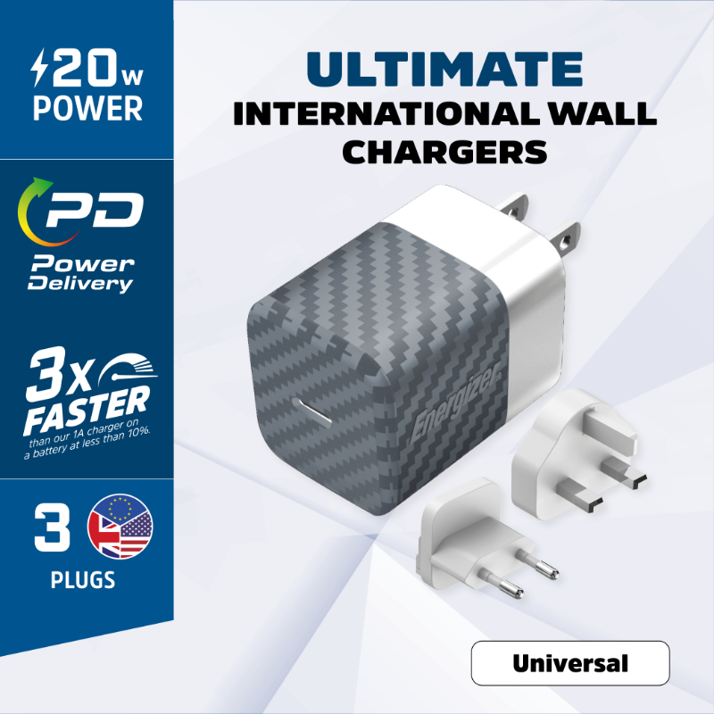 Rychlá a spolehlivá síťová nabíječka Energizer vybavená portem USB-C s maximálním výkonem 20 W. Polovodič (nitrid galia) použitý v nabíječce efektivně využívá energii (výrazně se nezahřívá), takže je ekologičtější a bezpečnější než tradiční nabíječky. Technologie Power Delivery upravuje napětí a proud nabíjení na maximální hodnoty, které zajišťují bezpečné nabíjení zařízení. Díky tomu lze stejnou nabíječku používat k nabíjení různých telefonů, ale i tabletů a dalších mobilních zařízení. Součástí balení jsou tři adaptéry pro připojení nabíječky k síťové zásuvce v EU / Velké Británii / USA. Vlastnosti výrobku: - Nabíječka je určena pro nabíjení mobilních telefonů, které jsou součástí balení: - Maximální výstupní výkon: PD 20 W - Proud: 20 W: 20: 4 A (max.) - Identifikace maximálního napětí a proudu - Podpora rychlého nabíjení pro telefony Apple iPhone a Android - Bezpečné nabíjení různých modelů smartphonů a tabletů - Adaptéry pro síťové zásuvky EU / UK / USA - Rozměry: 180 x 60 x 40 mm - Hmotnost: 100 g