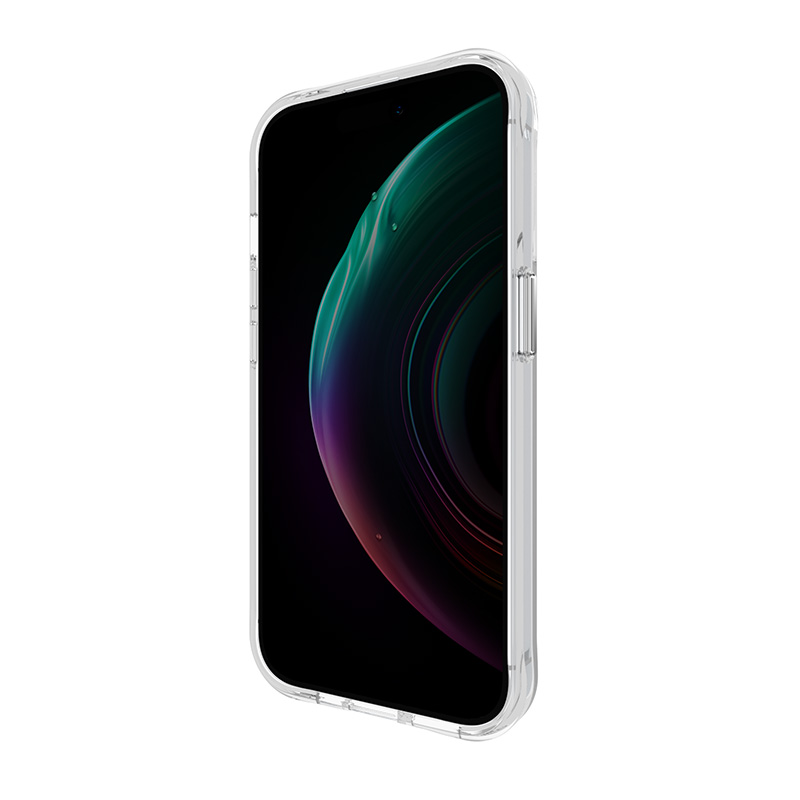 A slim and elegant protective case for iPhone 15 Pro that shines brightly with shiny and iridescent reflective film elements. Slightly raised bezels around the display and lens protect against scratches. Built-in magnets ensure that your MagSafe Charger adjusts precisely every time.