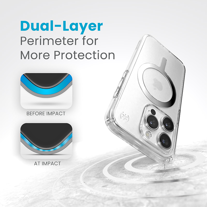 Item nameSpeck Presidio Perfect-Clear MagSafe - Case for iPhone 15 Pro (Clear / Chrome Finish / Serene Silver)