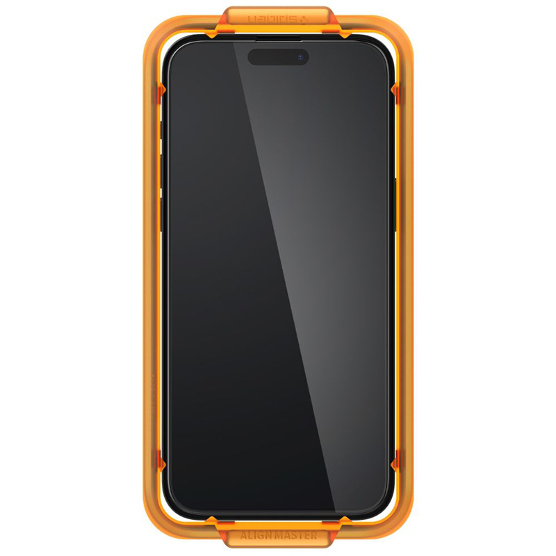 Name des Erzeugnisses.Spigen Alm Glass FC 2er-Pack - Gehärtetes Glas für iPhone 15 Pro 2 Stück (schwarzer Rahmen)