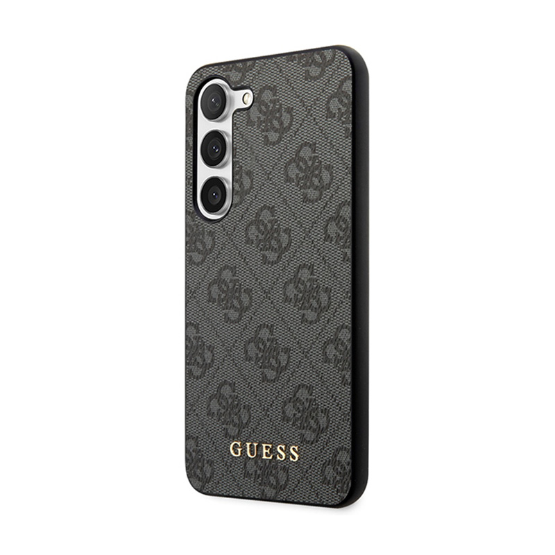 Guess 4G Metal Gold Logo charakteryzuje się jednym z bardziej znanych motywów używanych przez Guess. Cały tylny panel etui pokryto emblematami 4G, które umiejscowiono na bardzo przyjemnej w dotyku fakturze saffiano. Złote logo Guess na dole. Połączenie tych elementów sprawia, że całość prezentuje się bardzo elegancko.