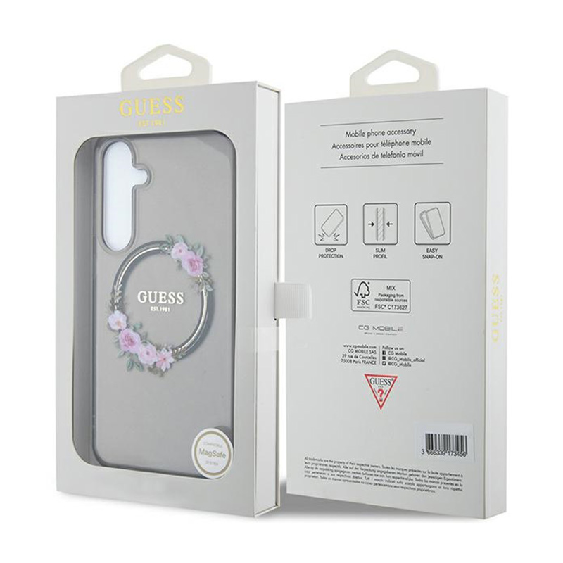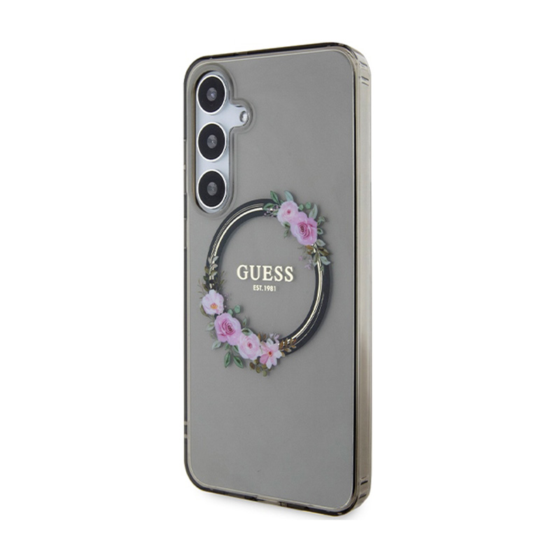 Name des Erzeugnisses.Guess IML Flowers Wreath MagSafe - Hülle für Samsung Galaxy S24+ (Schwarz)