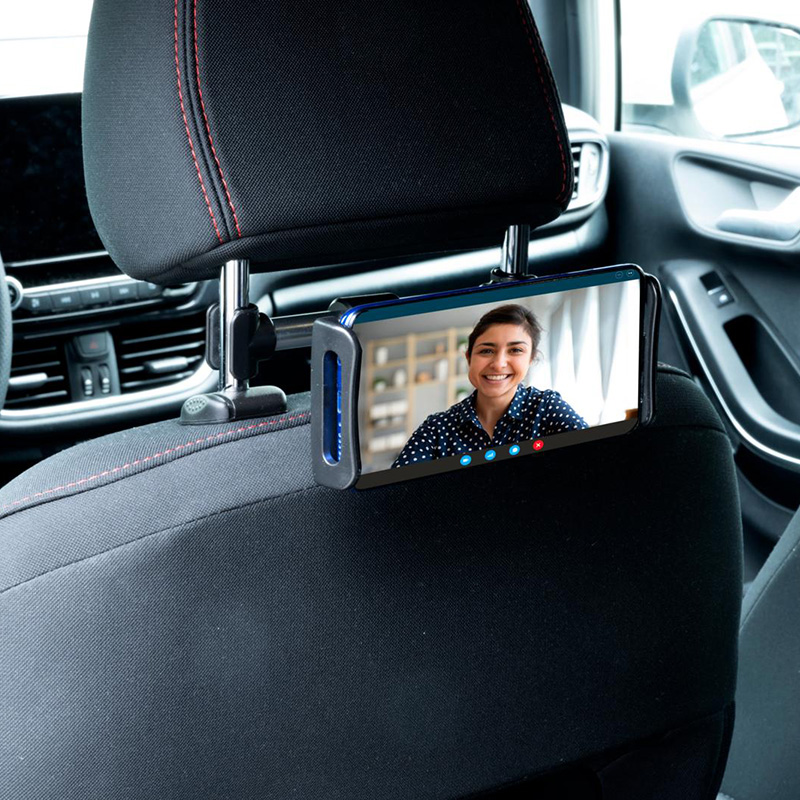 El robusto soporte para tablet/smartphone que se monta en el reposacabezas del asiento del coche es un accesorio esencial para los viajeros que desean mantenerse cómodos y entretenidos durante los viajes largos.