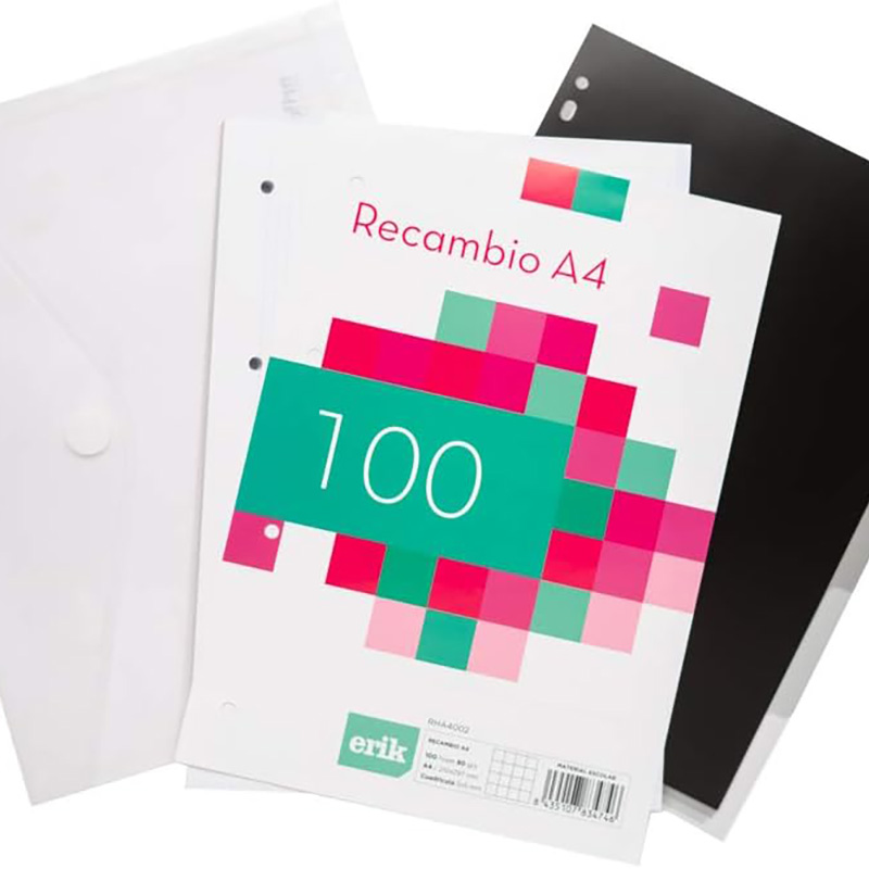 Segregator posiada 4 ringi, zamknięcie na gumkę i spersonalizowane wnętrze: 100 kartek A4, przezroczystą plastikową kopertę, 4 zakładki.