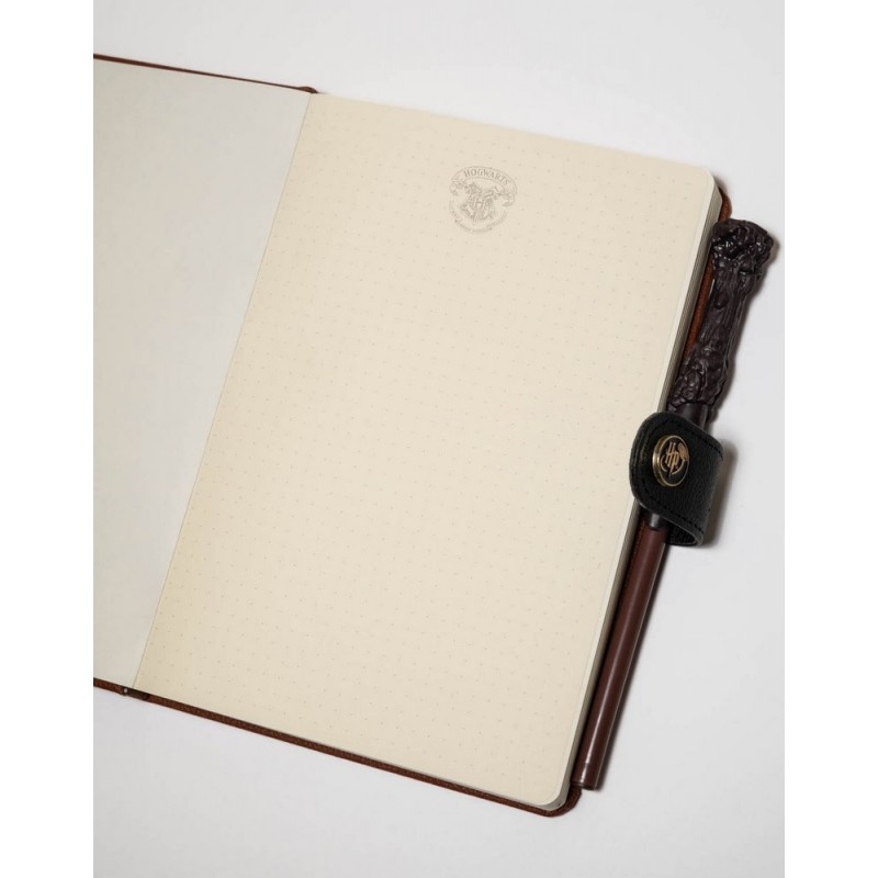 Notes zawiera w zestawie długopis stylizowany na różdżkę Harry'ego Pottera.