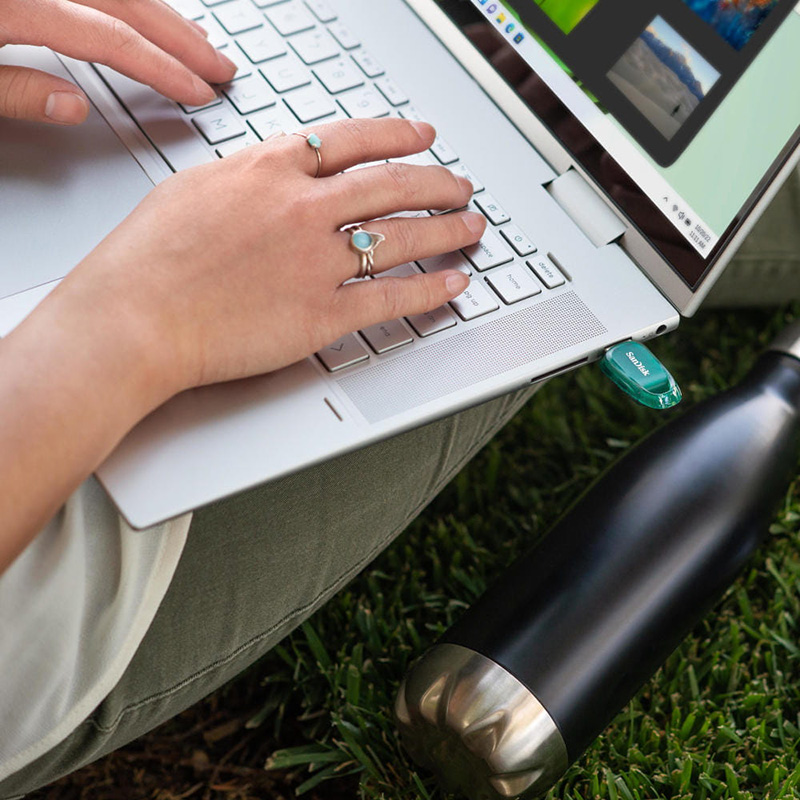 SanDisk Ultra Eco - Pendrive 128 GB USB 3.2 to nośnik danych, który nie tylko umożliwia efektywne przechowywanie ważnych plików, ale także dba o naszą planetę. Zaprojektowany z myślą o ekologii, wykonany został w ponad 70% z plastiku pochodzącego z recyklingu, w tym z plastikowych butelek. Dzięki temu innowacyjnemu podejściu, emisja CO2 oraz zużycie świeżej wody i energii w procesie produkcji zostały zredukowane o ponad 50%.