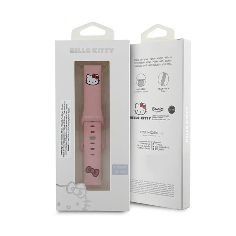 Uroczy pasek dedykowany do smartwatcha o standardowym mocowaniu o szerokości 20 mm, sygnowany przez markę Hello Kitty. Pasek jest niezwykle wygodny i posiada możliwość regulacji obwodu, dzięki zapięciu na napę ze szlufką, co pozwala dopasować go do każdego nadgarstka.