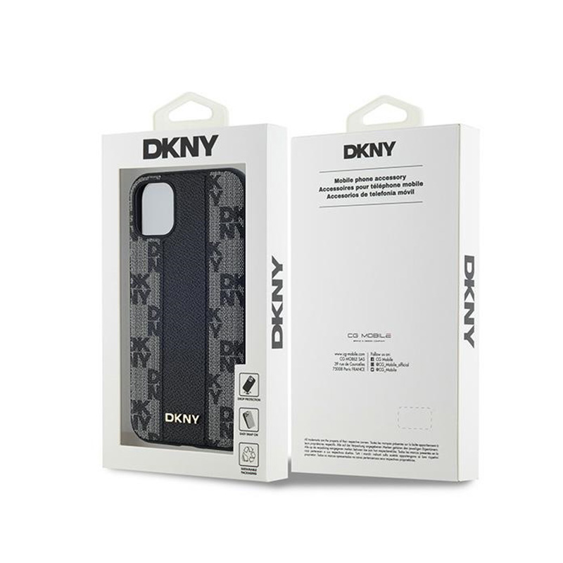 The case attracts attention thanks to the unique pattern of DKNY initials, which create a striking check. In addition, the elegant vertical stripe in the color scheme of the case introduces a consistent and sophisticated look. A subtle, small DKNY logo placed at the bottom emphasizes the prestige and authenticity of the product.