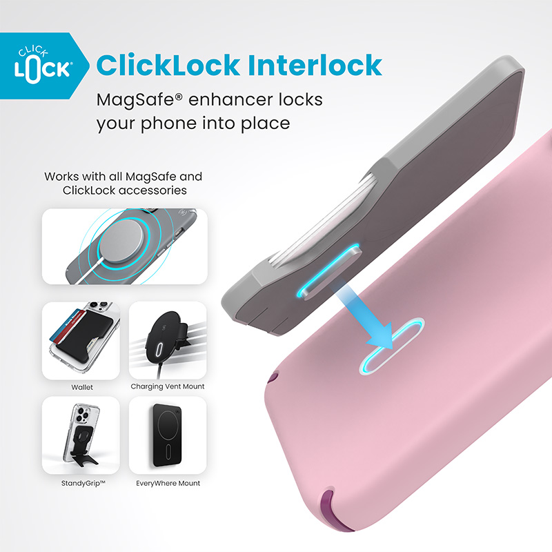 Speck ClickLock™ accessories also work with all accessories with MagSafe functionality, even without the built-in ClickLock™ system.