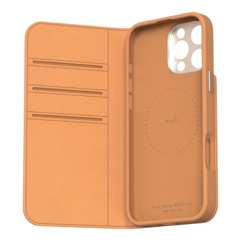 | Name des Erzeugnisses. | Moshi Overture MagSafe - 3-in-1 Lederhülle mit Klappe für iPhone 16 Pro Max (Caramel Brown) |