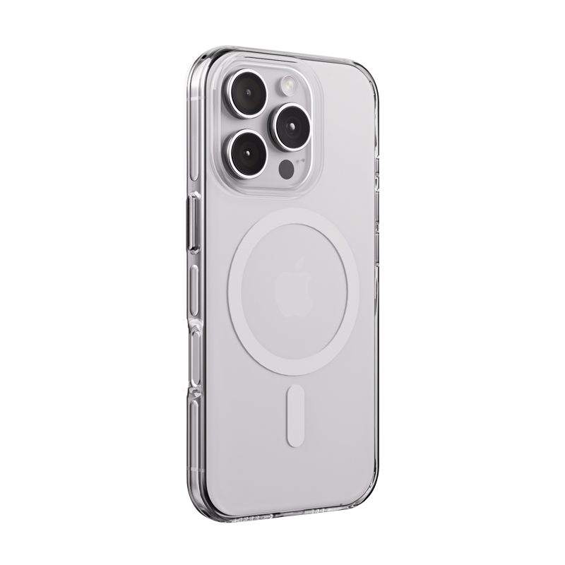 The Clear MAG Pro case is made entirely of ultra-transparent polycarbonate with a thickness of 2mm. Its minimalist design makes it almost impossible to feel in the hand, and the phone retains its elegant design without unnecessary thickening of the device. The metal buttons on the sides of the case also provide smoother clicks and volume control. Unlike regular MagSafe cases, the Clear MAG Pro case is equipped with high-power N52 magnets and an additional positioning magnet. Thanks to them, all MagSafe accessories adapt to your phone in a precise way. High-quality magnets also ensure that iPhone can be charged quickly and safely with MagSafe chargers (such as MagSpot Stand). Product Features: · Seamless polycarbonate construction · 2mm thick hardened PC plastic · High transparency from all sides · N52 magnets with high attraction power · Additional positioning magnet · Compatible with all MagSafe accessories · Metal buttons for smoother clicks · Raised camera bezel and display edge · Compatibility: Apple iPhone 16 Pro Max