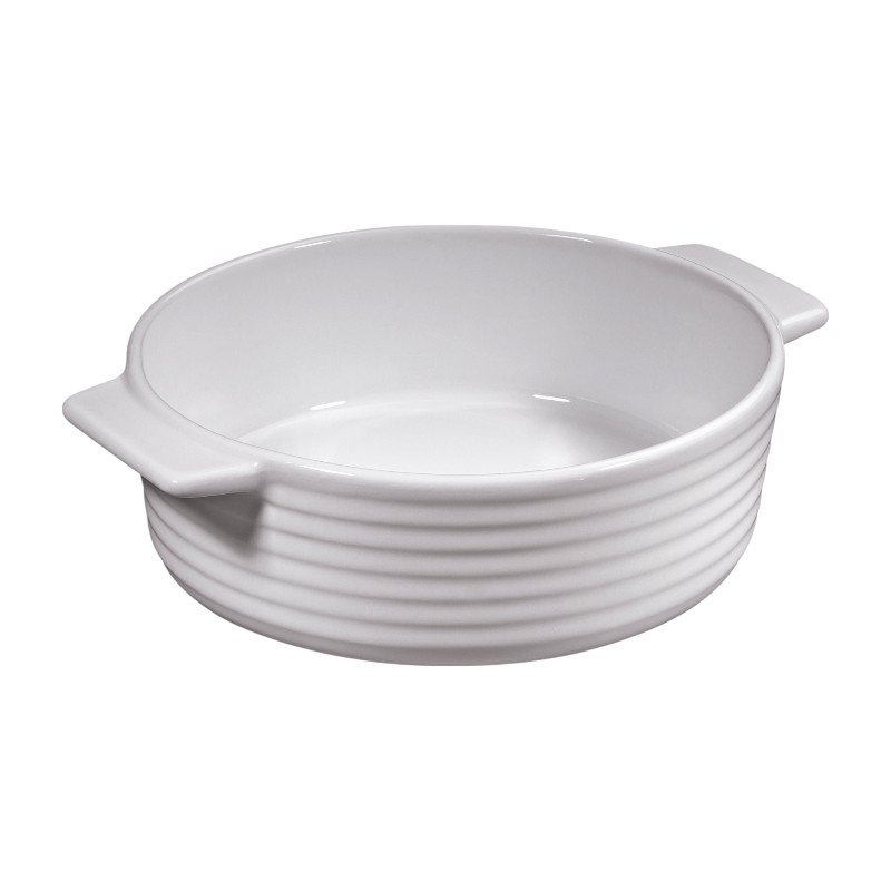 Okrągła brytfanna porcelanowa Küchenprofi Burgund to stylowe i funkcjonalne naczynie do przygotowywania małych porcji ciast, zapiekanek i mięs. Dzięki kompaktowym wymiarom oraz pojemności 0,7 l idealnie sprawdzi się do pojedynczych porcji, które można od razu podać na stół.