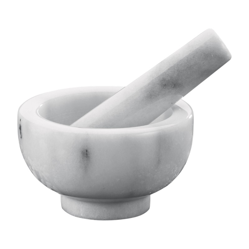 · The rounded tip of the pestle adapts to the shape of the mortar