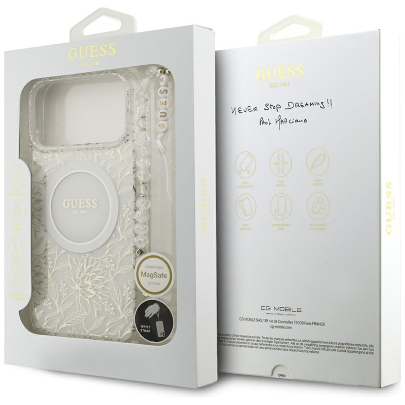 Nazwa prod. | Guess IML Flowers Electro Pearl Strap MagSafe - Etui iPhone 17 Pro Max (biały) |