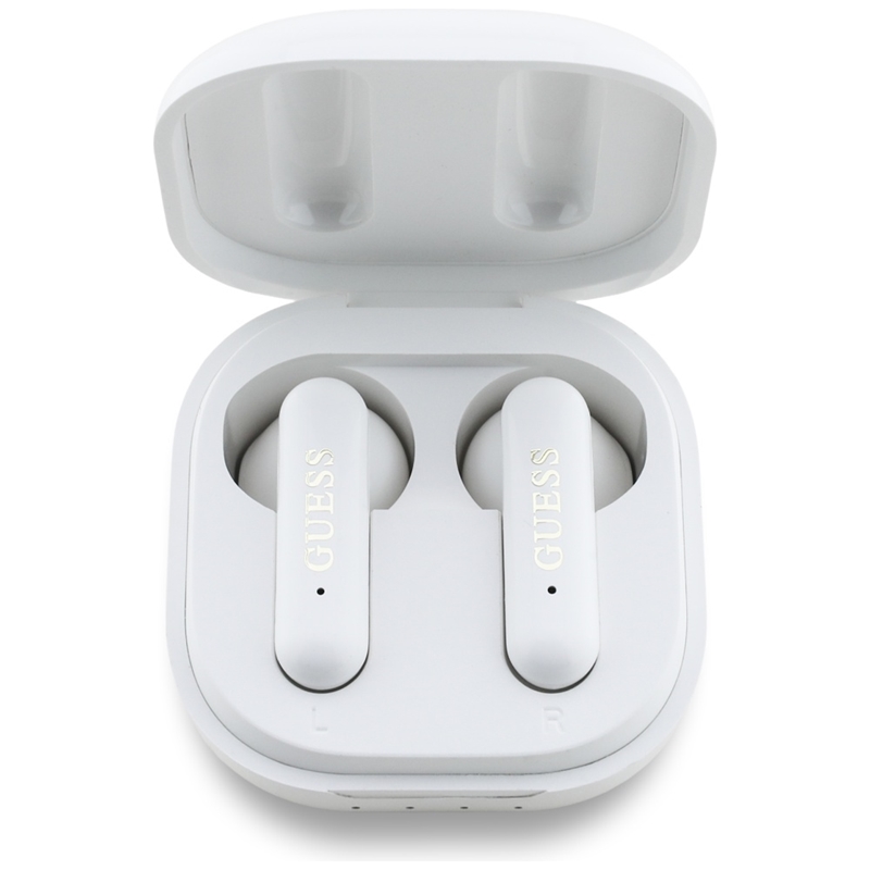 Obudowa słuchawek wykonana z poliwęglanu w kolorze białym nadaje im elegancki, nowoczesny wygląd. Złote logo Guess na powierzchni słuchawek dodaje im luksusowego charakteru i wyróżnia je na tle standardowych modeli.