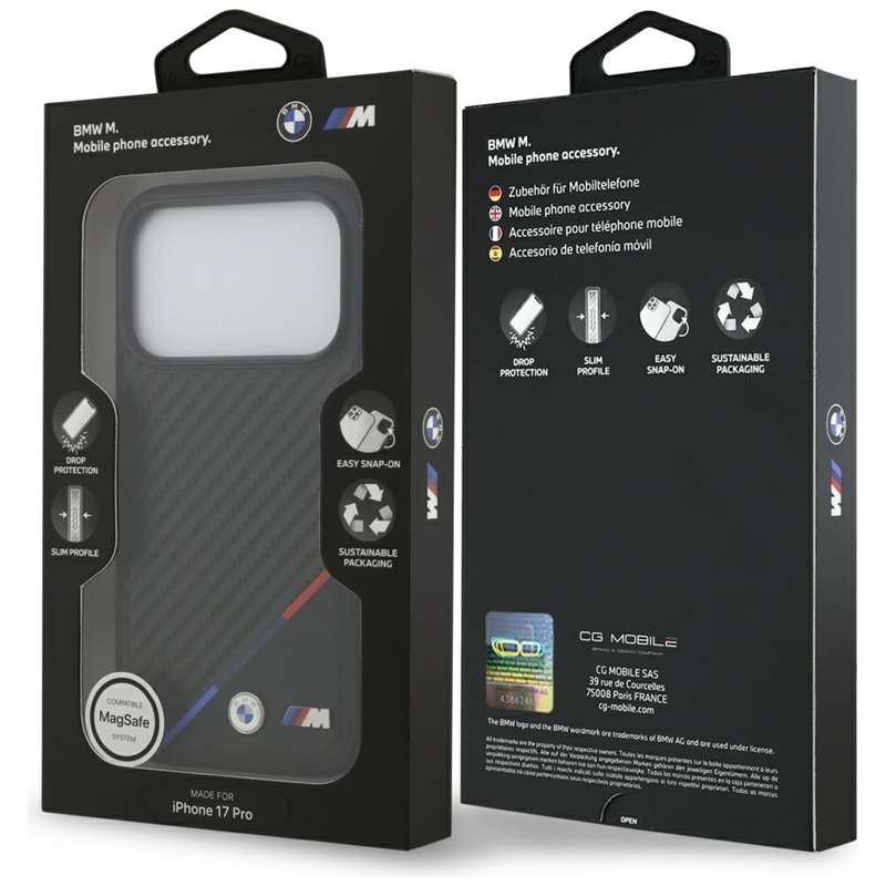 | Nazwa prod. | BMW M Carbon Tricolor Line MagSafe - Etui iPhone 17 Pro (czarny) |