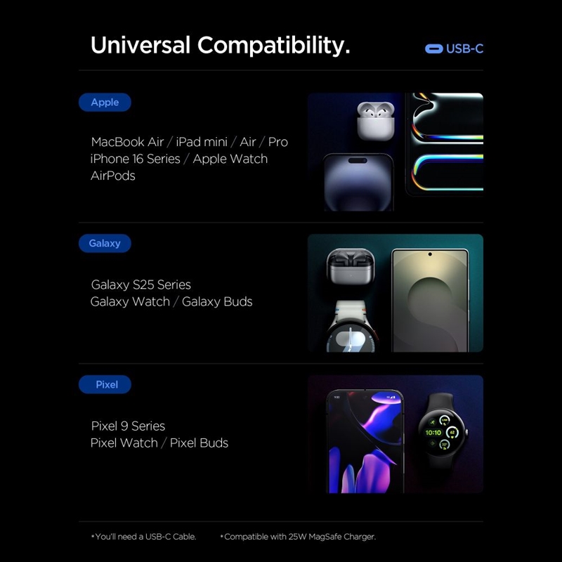 Kompaktowa konstrukcja sprawia, że Spigen EE472EU to niezawodne rozwiązanie dla wymagających użytkowników, którzy chcą jednocześnie ładować dwa urządzenia szybko, bezpiecznie i wygodnie.
